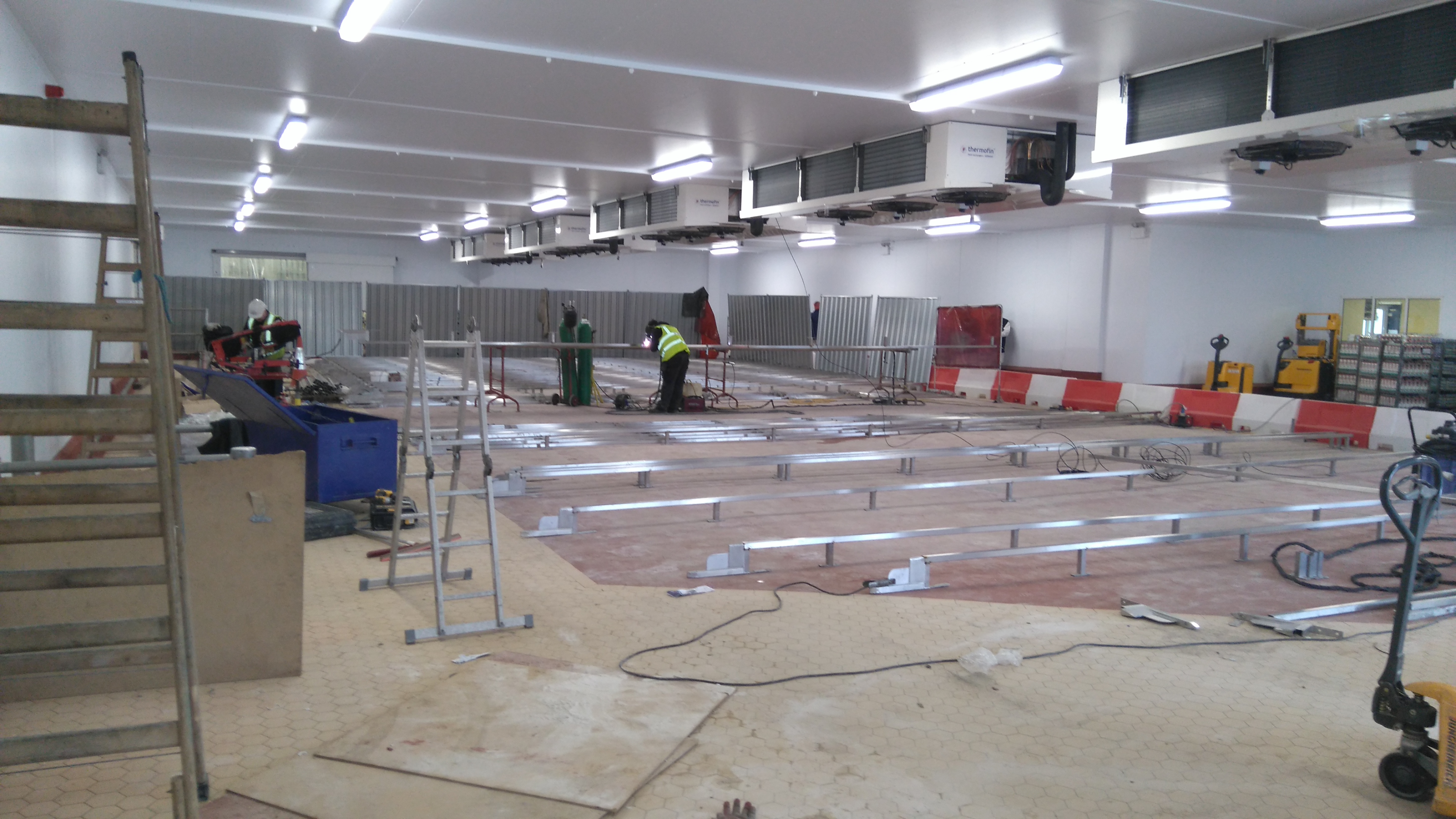 The project consisted of the removal of the internal polystyrene core panel envelope along with all electrical and refrigeration services and their replacement with a new rockwool core envelope and new energy efficient building services systems. In addition a new high care flooring system of Ucrete UD200 and Fully Vitrified tiles were installed to improve the GMP finishes in the area.